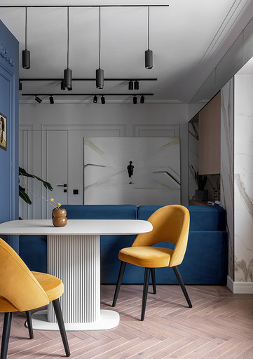 - Освещение: потолочные магнитные треки Skyline, трековая система Italline Danny, накладные светильники Denkirs