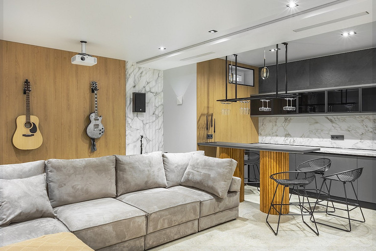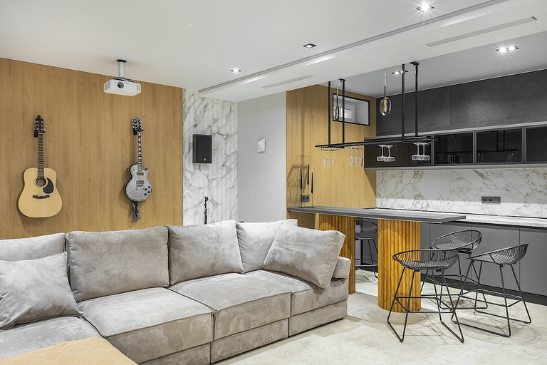 - Освещение: технический свет Maytoni, люстра в гостиной Bezhko Light, акцентный свет Loft Design