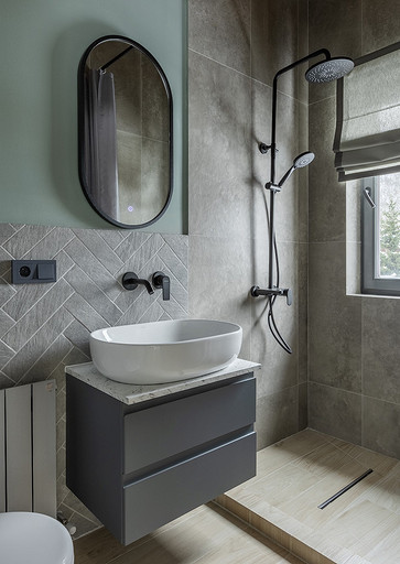 - Сантехника: инсталляция Tece, черные смесители Iddis