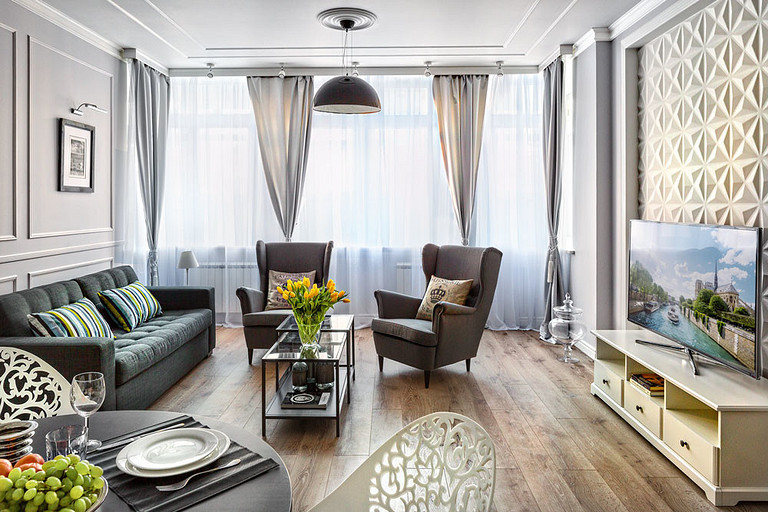 Реализованный проект двухкомнатной квартиры общей площадью 90 м²
