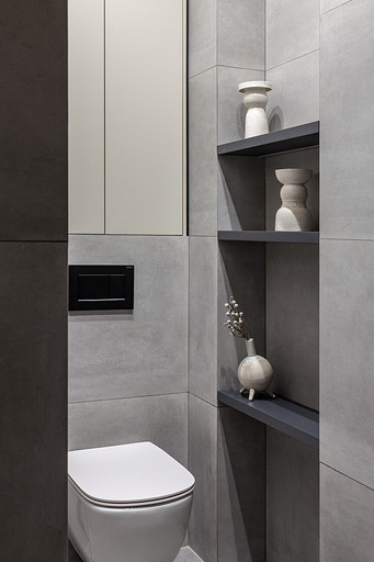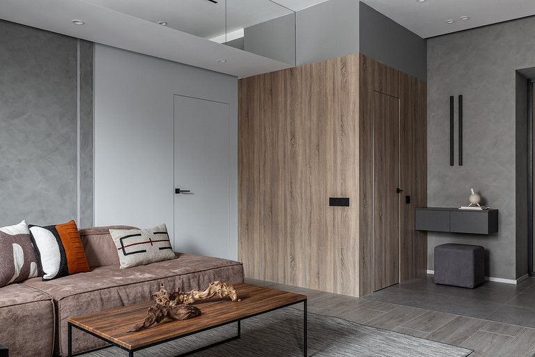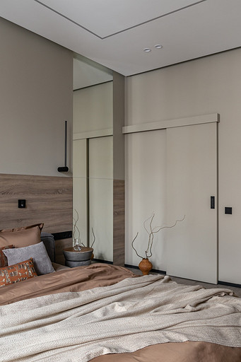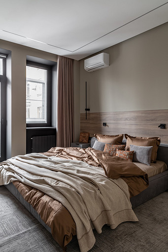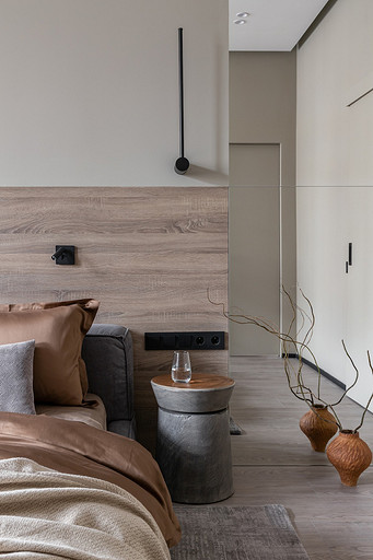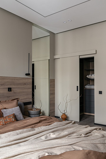 Теперь здесь нет коридоров, есть две гардеробные и большая ванная комната (8 квадратных метров). Все благодаря перепланировке. Интерьер тоже изменился до неузнаваемости. Читать далее...