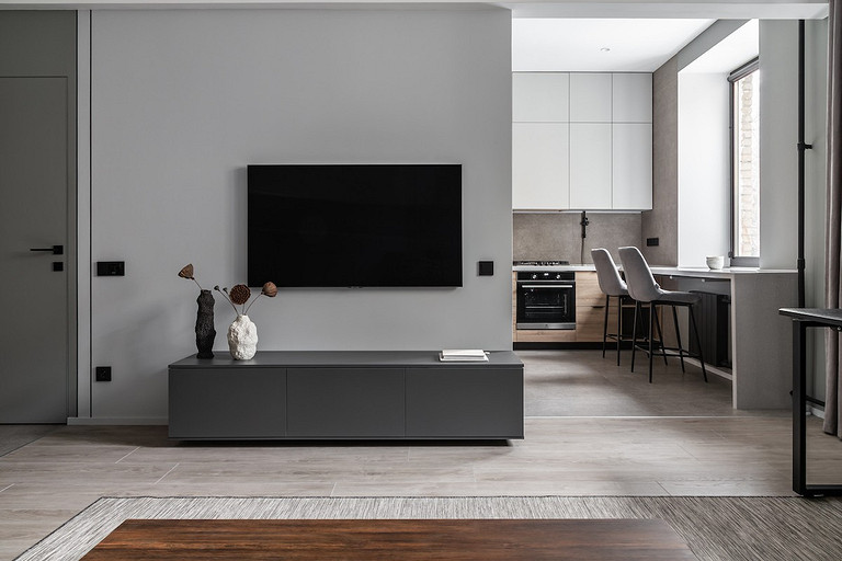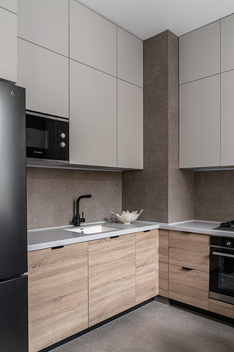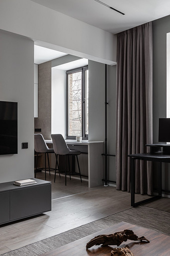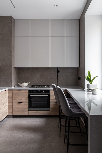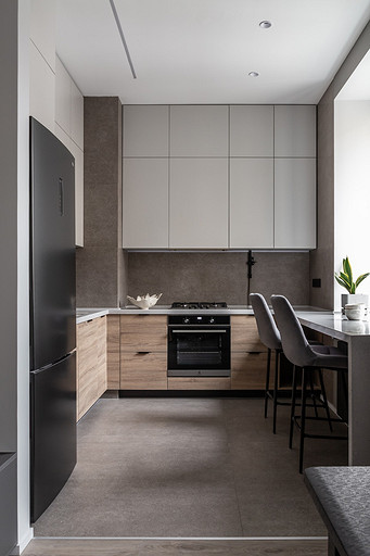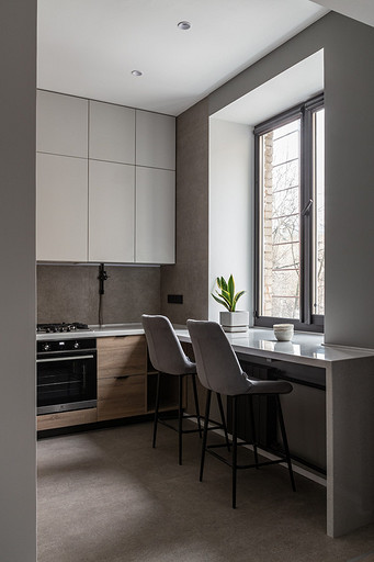 - Мебель: кухонный гарнитур «Манакор Мебель», барные стулья Stoolgroup