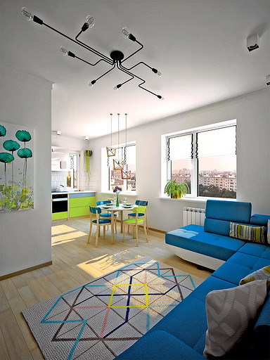Сочетание цветов в интерьере: нейтральные стены и яркая мебель