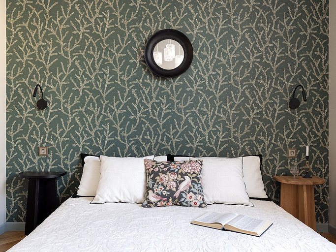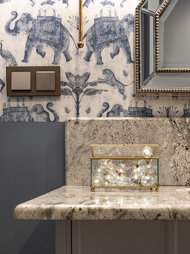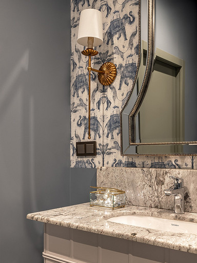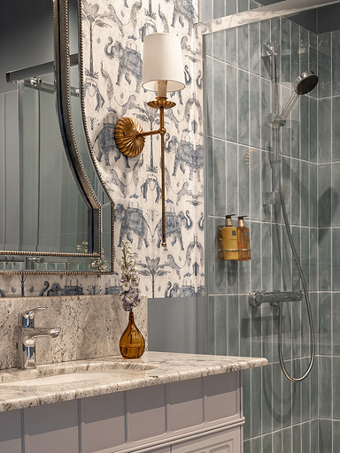 - Стены: краска Tikkurila, плитка Cifre, обои Aura
