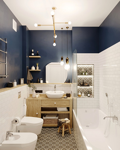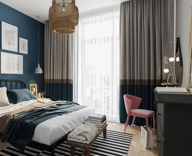 Просторная квартира с 2 санузлами и 2 гардеробными. Каждый метр функционально продуман, чтобы отвечать всем запросам заказчицы. Из основных пожеланий — это возможность принимать много гостей, поэтому кроме дивана раскладывается и кресло. Рабочее место расположилось на утеплённой лоджии, а 2 гардеробные позволяют раздельно хранить одежду и хозяйственные принадлежности. Насыщенный синий цвет в интерьере получился очень приятным и спокойным акцентом этой квартиры. Богатый и глубокий сапфировый оттенок добавил глубины и визуально увеличил комнаты.