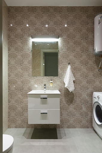 - Сантехника: унитаз, умывальник Roca, смесители Grohe