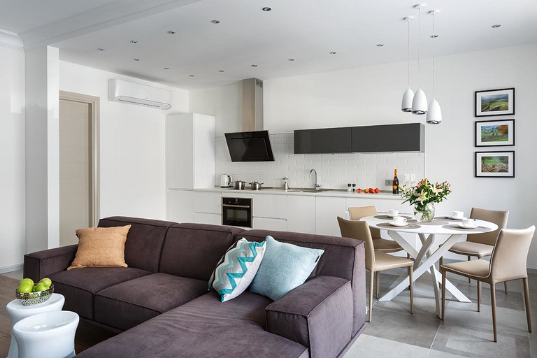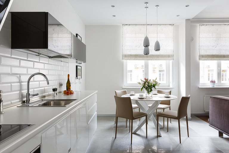 - Мебель: столовая группа Bontempi, кухня Arrex