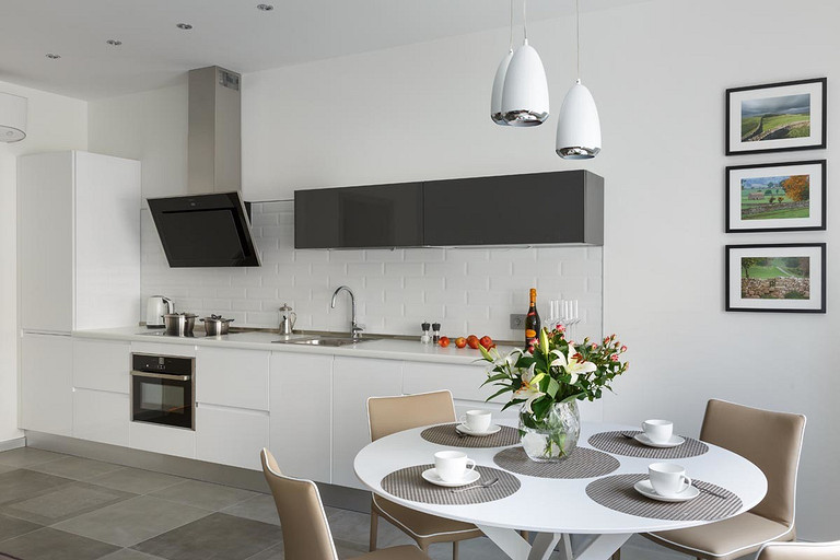 - Бытовая техника: плита, духовка, вытяжка, посудомоечная машина Neff, холодильник Liebherr