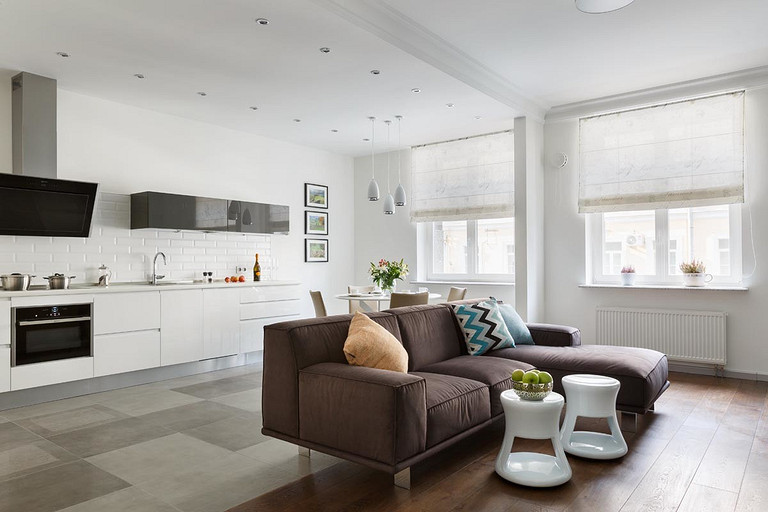 Дизайнер учла закономерность, которую часто упускают из виду: вкусы и привычки пары находятся в становлении, а потому нужна не жёсткая определённость в стиле и цвете, но удобное поле для выбора и эксперимента.