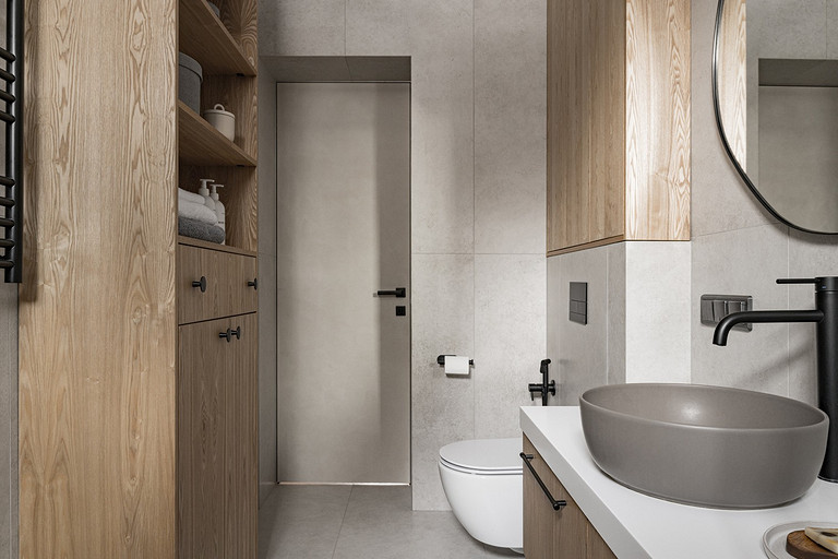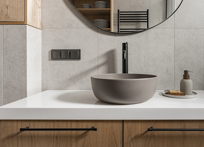 - Пол: SPC-ламинат Vinilam, керамогранит Estima
