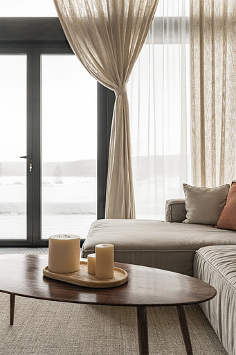 - Окна: распашные конструкции — алюминиевые «Алютех», панорамное остекление — стеклопакеты Schüco