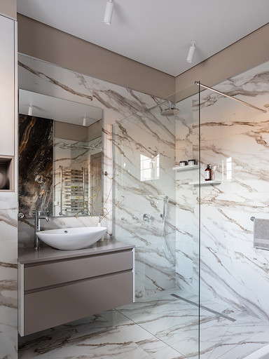 - Стены и пол: керамогранит Empero, Neodom