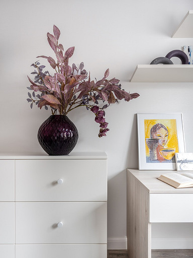 - Декор: Ap Home, Treez.ru, Karlsbach, картина в спальне — Лиана Ни, серия «О женском», галерея AnnArtProject, картины в детской — Лиана Ни и Аделия Сулейманова, галерея AnnArtProject