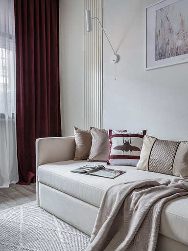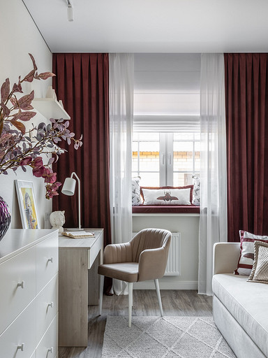 - Текстиль: шторы Daylight & Liontex, Arya Home, Print Me Fabric, Altamarca, плед в спальне Enza Home