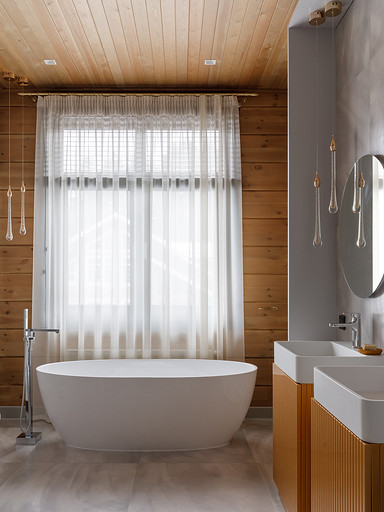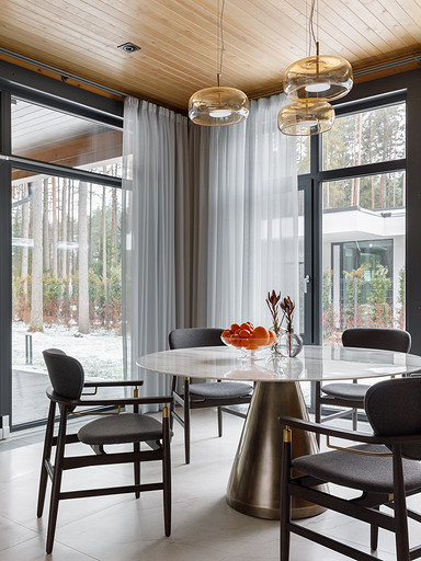В поисках места под строительство дома для постоянного проживания семья из трех человек оказалась в живописном уголке Карельского перешейка на берегу Финского залива. Теперь в панорамные окна их нового жилья заглядывают вековые сосны. Да и интерьер оформлен так, чтобы поддерживать эффект единения с природой. Читать далее...
