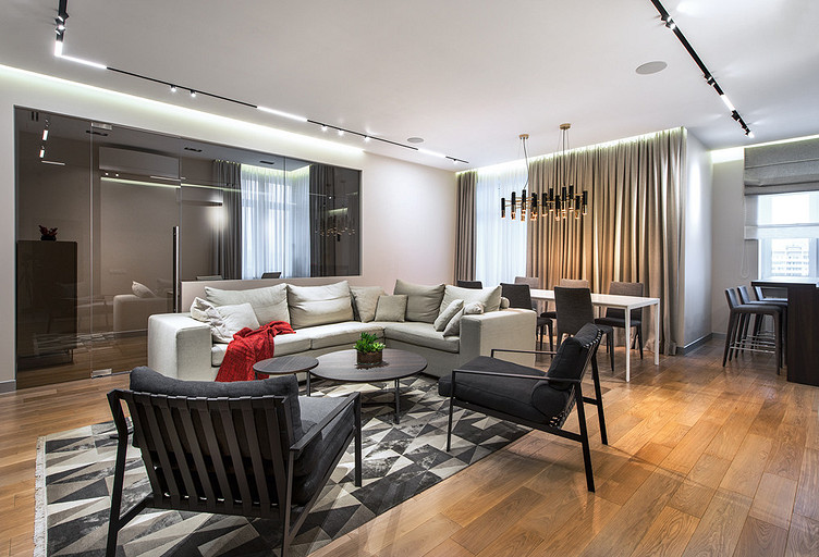Интерьер квартиры для семьи: стиль контемпорари в природной гамме