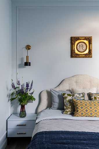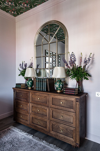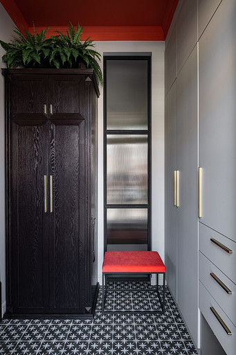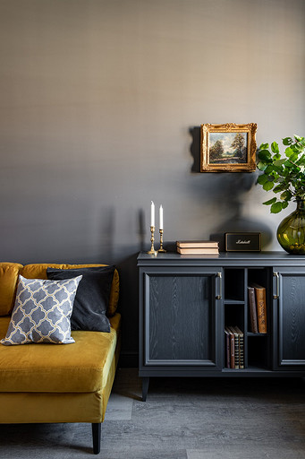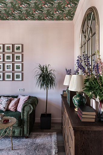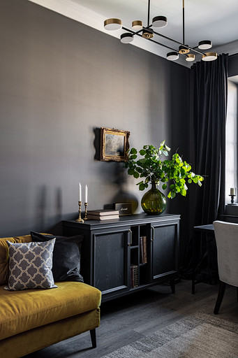 - Мебель: журнальный столик La Redoute, диваны в гостиной MdeHouse, софа в кабинете хозяина divan.ru, комод «Ангстрем», кухня, буфет на кухне, шкаф в прихожей, стеллаж в гостиной, письменный стол и комод в кабинете сделаны на заказ