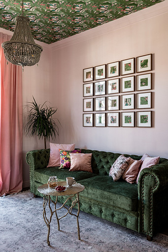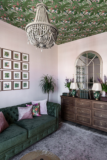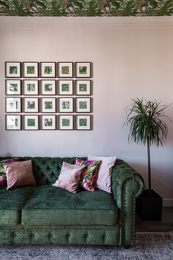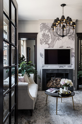 - Стены: обои в гостиной Wall Street