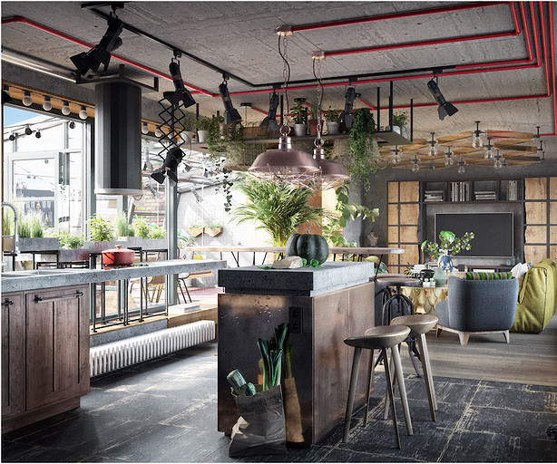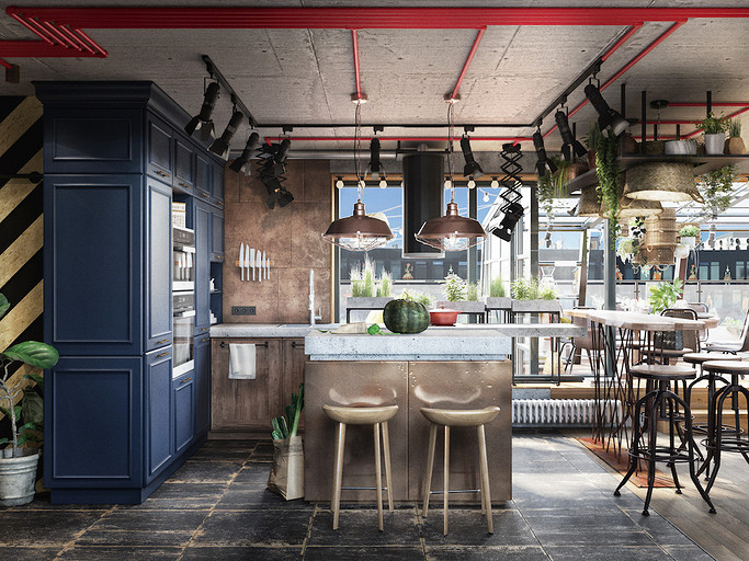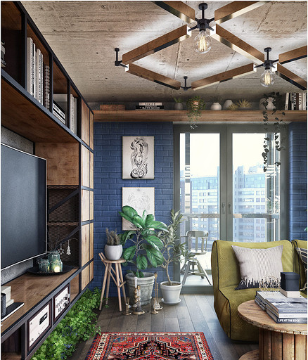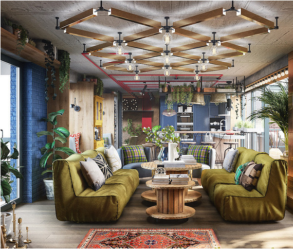 Яркий дизайн-микс: лофт, индастриал, эко и кантри в интерьере квартиры