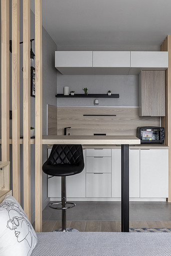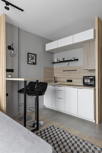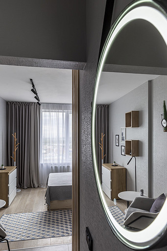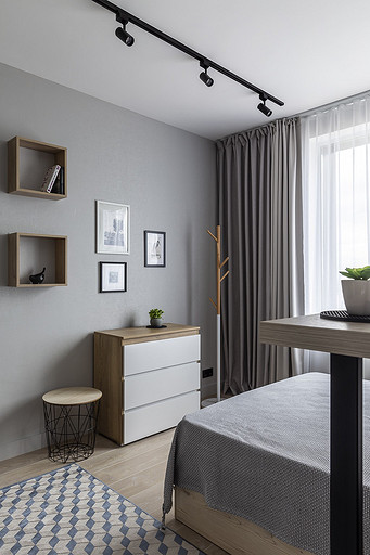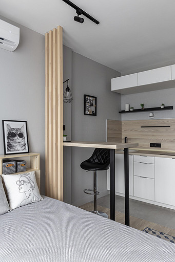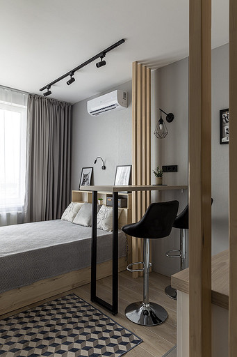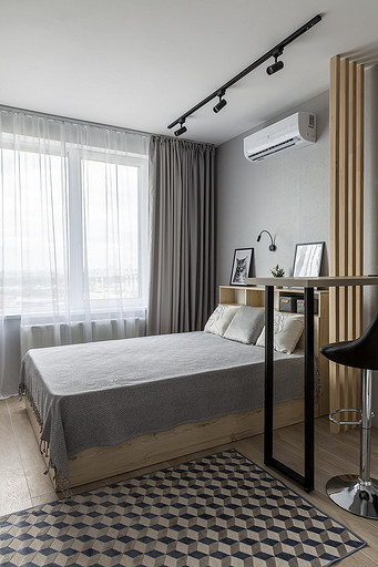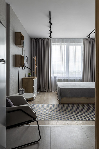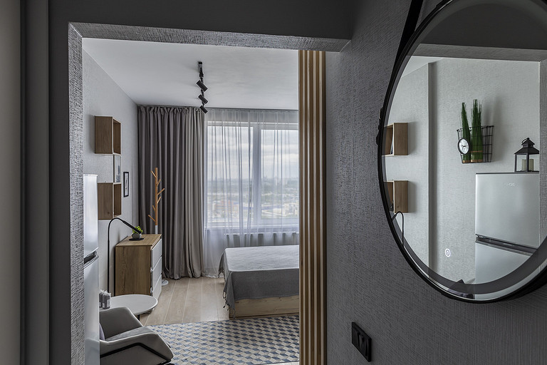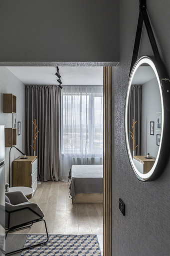 На этой квартире мы решили поэксперементировать со стилем. Поскольку квартиру нужно было максимально быстро отремонтировать и сдать в аренду, мы сконцентрировались на образе потенциального арендатора. Нам представился молодой человек или девушка, интраверт, работающий из дома на удаленке,мало готовящий себе еду, не сильно расположенный к гостям. Если это девушка, то нужно было продуматькрасивые локации для съемки. Мы понимали активные цвета могут исключит у нас 40 процентов потенциальных арендаторов. Поэтому остановились на монохроме. Необходимо было разделить относительно небольшую, но длинную комнату на спальную, обеденную и рабочую зону, но при этом сохранить воздух и не перегрузить деталями. Поэтому я буквально держала за руку заказчицу, чтобы она не покупала лишний декор. Самой сложно и в то же время акцентной деталью интерьера стали рейки. На них долго уговоривала заказчицу. Рейки основной зонирующий и стилеобразующий акцент в интерьере. В комнате мы поменяли полностью все: и напольные покрытия и цвет стен, в санузле решили не вкладываться в замену плитки и сантехники. Буквально поменяли мебель и светильники и комната преобразилась. Поскольку ремонот этой квартиры пришелся на февраль, март прошлого года, когда уходили все бренды, то из брендов могу назвать Леруа Мелен и остатки Икеи. Задачу сделать все быстро, экономично и стильно мы решили блестяще. Заказчики сдали квартиру через 5 дней после публикации объявления о сдаче квартиры.