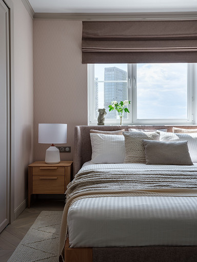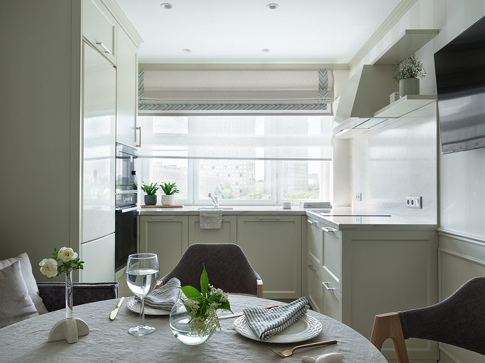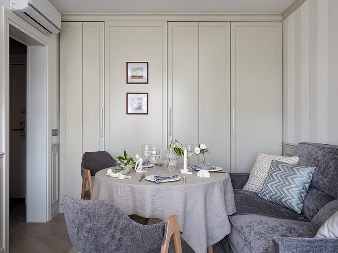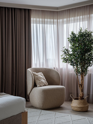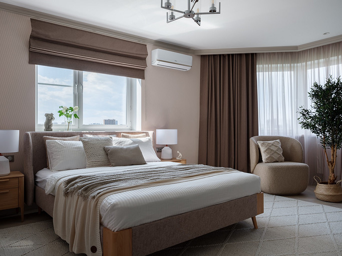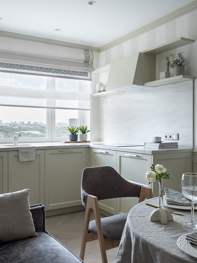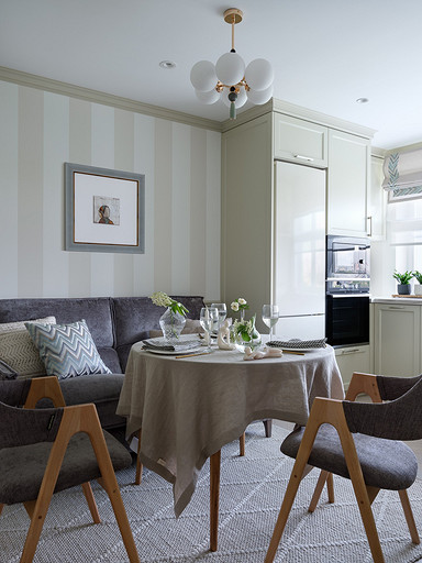 - Мебель: встроенная мебель и кухня Mr. Kitchen, диван «8 марта», обеденный стол и стулья Deep House, кресло и прикроватные тумбы Ellipse