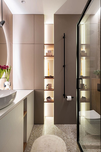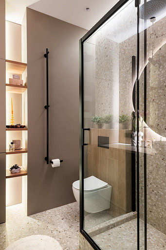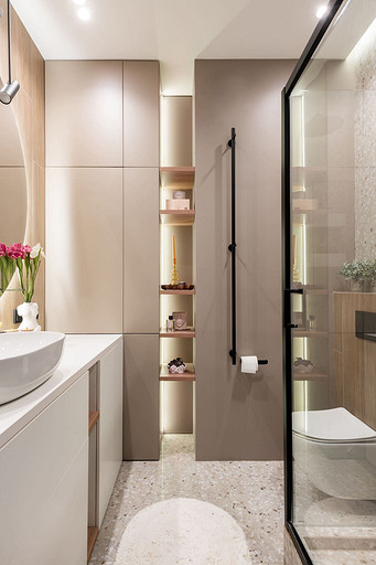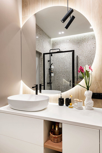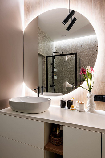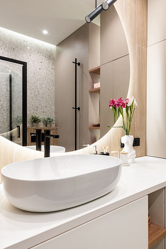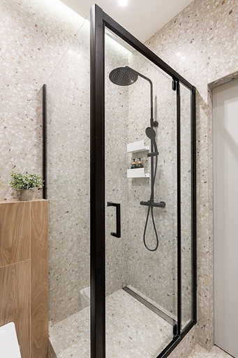- Сантехника: раковина и унитаз Ceramica Nova, смеситель Aquanet, кнопка смыва Geberit, душевая стойка Cersanit, душевой уголок Cezares