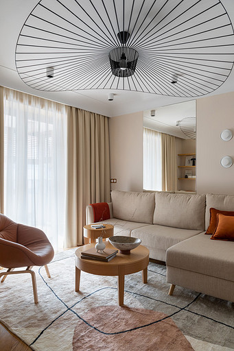 - Освещение: Vibia, люстра в гостиной Petite Friture