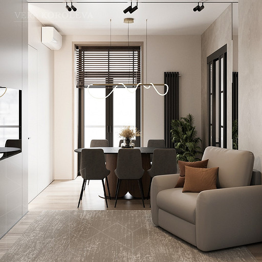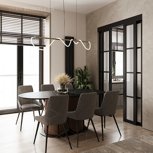 Наши Клиенты — дружная семья из 4-х человек, которые сначала искали квартиру в новостройке, но узнав, что на продажу выставлена квартира соседей за стенкой, решили не уезжать из любимого двора, а объединить 2 квартиры в одну. Мы с удовольствием взялись за эту непростую и интересную задачу. Какие задачи стояли: 1) Детские расположить подальше от столовой и гостиной, где взрослые часто засиживаются допоздна. 2) В гостиной предусмотреть достаточно места для приема гостей. 3) Организовать отдельную прачечную с сушильной и стиральной машинами. 4) Выделить зону для игровой, где семья проводит время за приставкой. 5) Сделать полноценную зону СПА, где можно снять стресс и расслабиться после рабочего дня. 6) Обустроить кабинет со всем необходимым для комфортной работы и уединения.