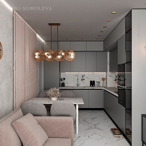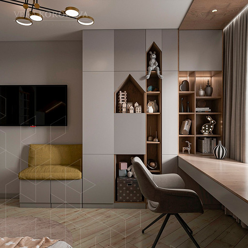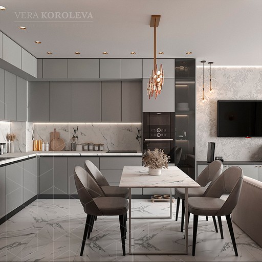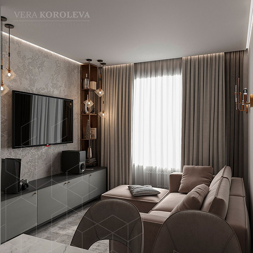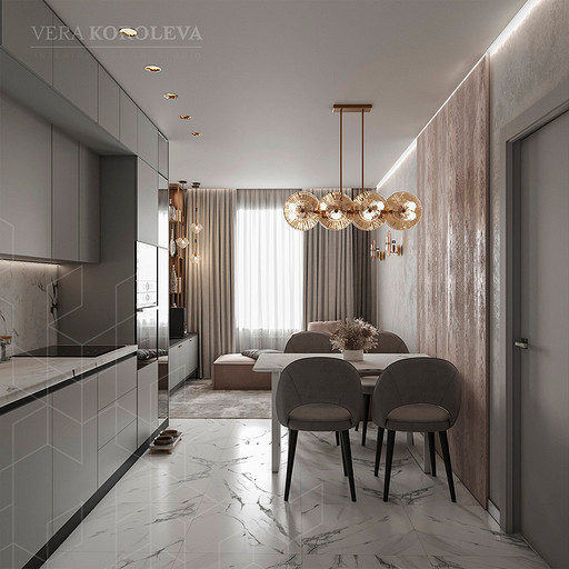 Наши Клиенты — молодая семейная пара с взыскательным вкусом и высокими требованиями к организации комфортного жилого пространства, имеющие собственный бизнес и проводящие много времени дома в компании многочисленных друзей. Изначально в наши задачи входило: Обязательно сохранить имеющуюся планировку и обойтись без переноса стен и дверных проемов. Организовать вместительную кухню, оборудованную всей необходимой техникой, облегчающей жизнь современной хозяйки, а также запланировать место для установки дополнительной морозильной камеры. Обустроить на лоджии удобное рабочее место для хозяина дома. Предусмотреть достаточно мест хранения, отдельно для каждого супруга. Спланировать комфортный санузел, оптимизировав его наполнение. В отдельной комнате обустроить уютную детскую на перспективу.