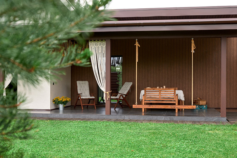 Реализованный проект банного дома площадью 66,1 м2 (без учета площади террас и гаража)