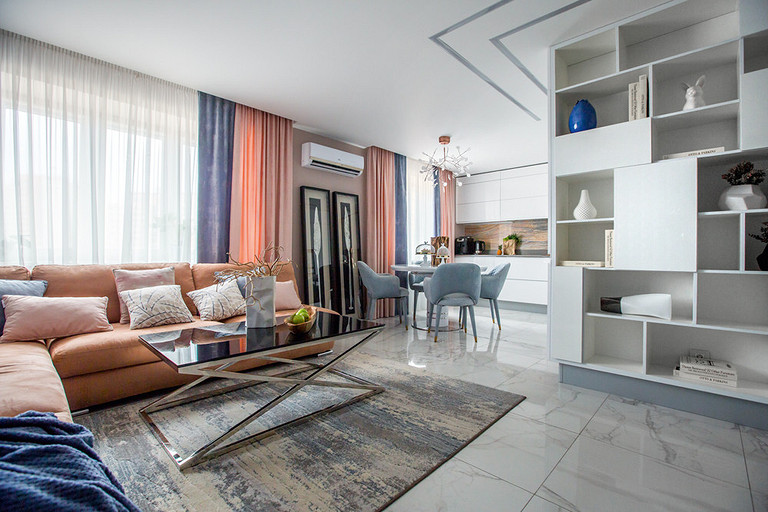 - Аксессуары: шторы и покрывало Studio Decor city, вазы Oakom, ковер Natura