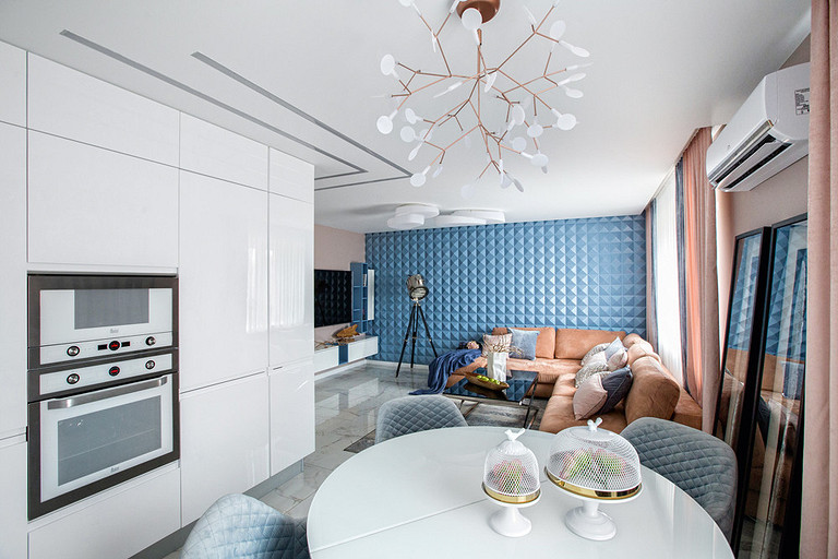 В современном интерьере важен баланс между рациональностью и свежестью образа. Для этого необязателен «монтаж аттракционов» — достаточно, как в этой липецкой квартире, нескольких идей, меняющих представление о стене как о банальной плоскости, чтобы почувствовать вкус игры и условность границ.