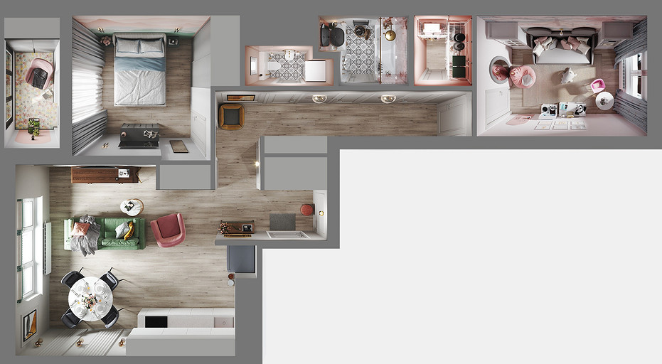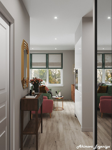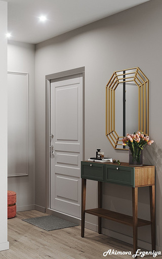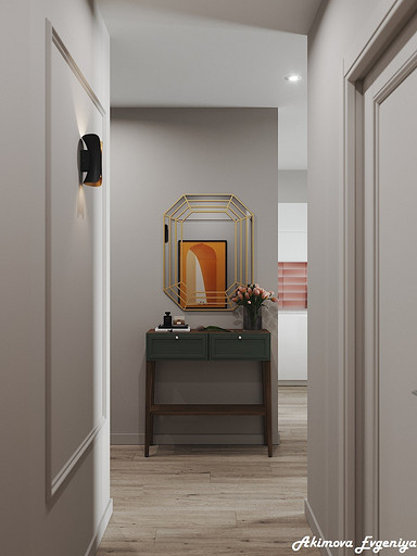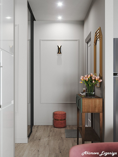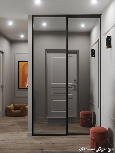 Эта квартира для очень дружной семьи с 1 ребенком. Изначально при входе был большой холл, проходной, отсутствовала грязная зона... В общем масса неудобств. Я это исправила, сделала удобную и практичную перепланировку, добавив места для хранения и самое главное — гигантский хозяйский шкаф. Уже в процессе реализации клиентка сказала, что это просто счастье и прекрасная моя находка. По стилистике — проект в целом довольно спокойный, но в каждом помещении есть яркие объединяющие зоны и, конечно, же мои любимые видовые точки.
