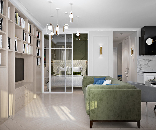 Демонтируя в маленькой однушке старые ненесущие перегородки и возводя новые, архитектор-дизайнер организует просторную студию и изолированную спальню, повышает функциональность санузла, прихожей и лоджии. Стиль оформления — контемпорари с элементами mid-century modern.