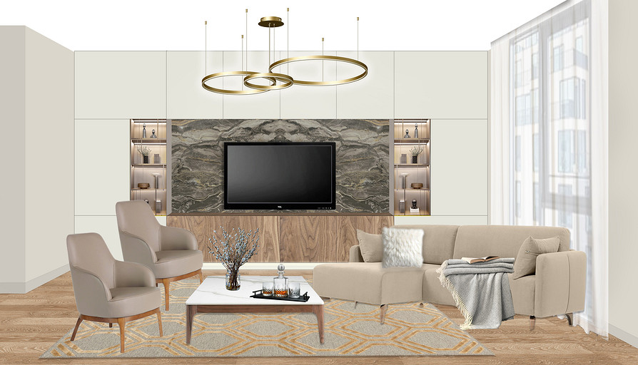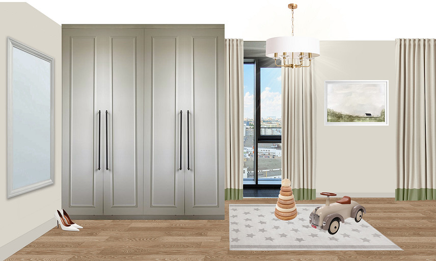 Это проект упаковки апартаментов в очень классном клубном доме Soho+Noho, недалеко от м.Белорусская. Помимо очень достойной отделки от застройщика внутри квартир тут еще и потрясающие входные группы, сауна, тренажерный зал, библиотека, переговорная комната — все это специально только для жителей. И плюс это выглядит супер стильно и премиально. Мне предстояло оформить эти апартаменты для большой семьи — и организовать праздничную кухню-гостиную, где будут часто гости (муж — иностранец, турок, у них принято часто бывать в гостях), и приватные зоны для всех членов семьи.