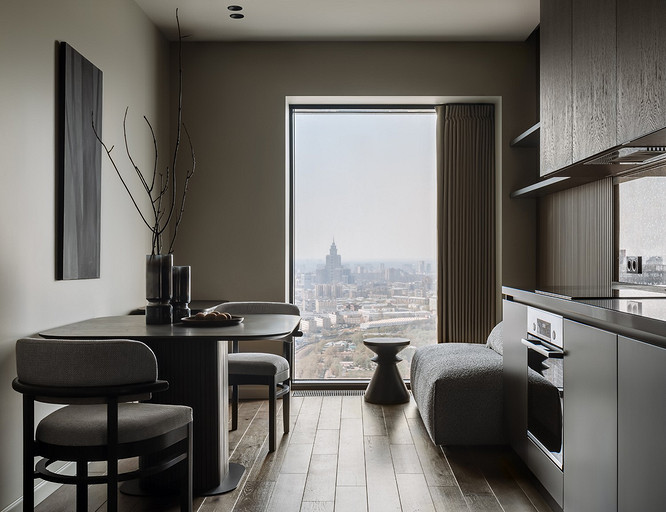 Интерьер не спорит с архитектурой жилого комплекса и не отвлекает от головокружительных панорамных видов, открывающихся с высоты пятидесятого этажа. Читать далее...