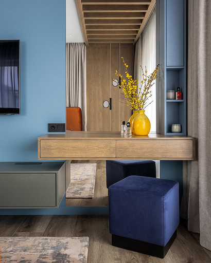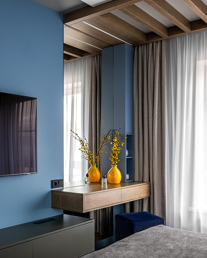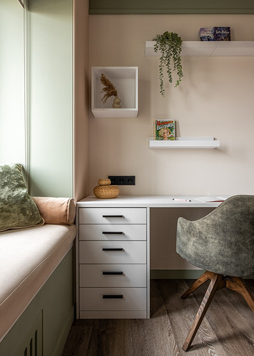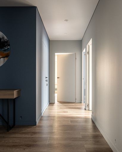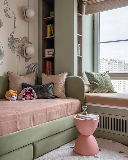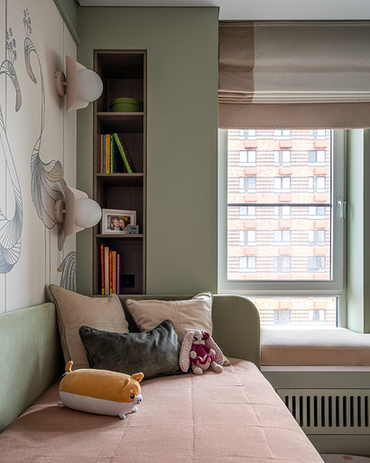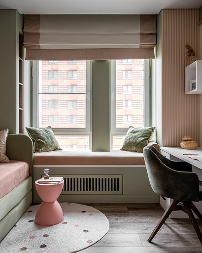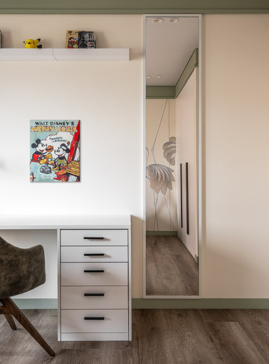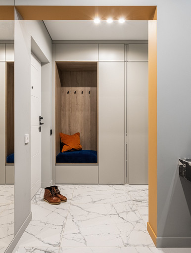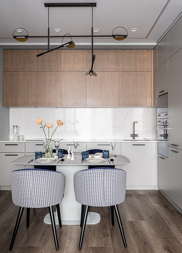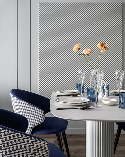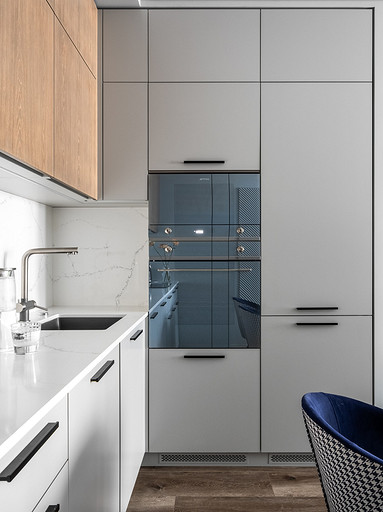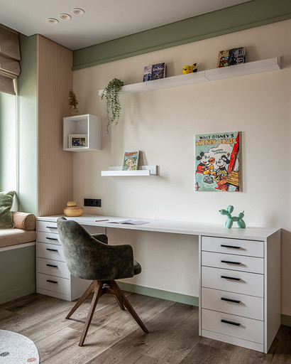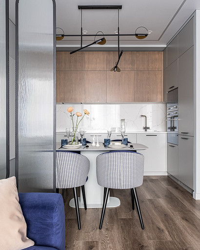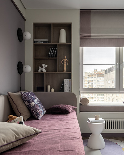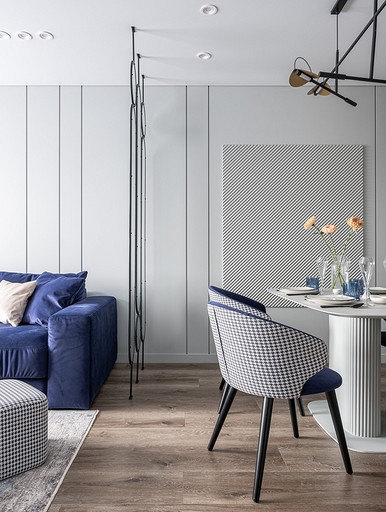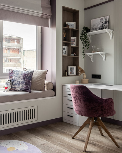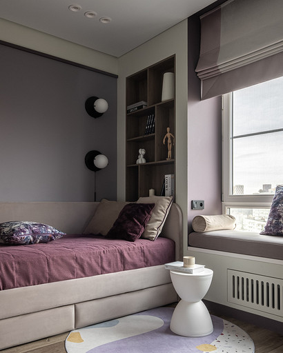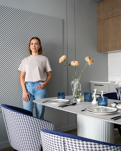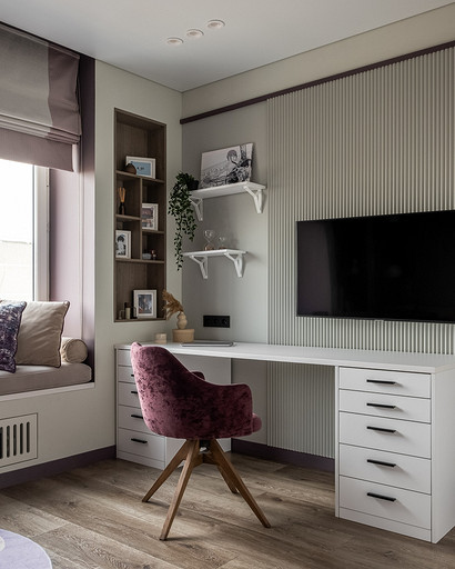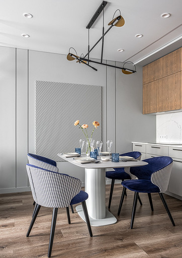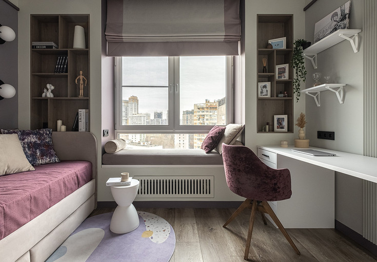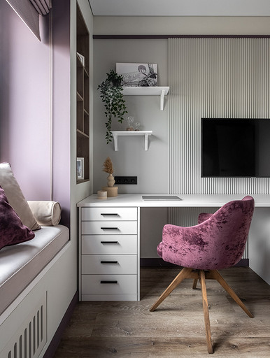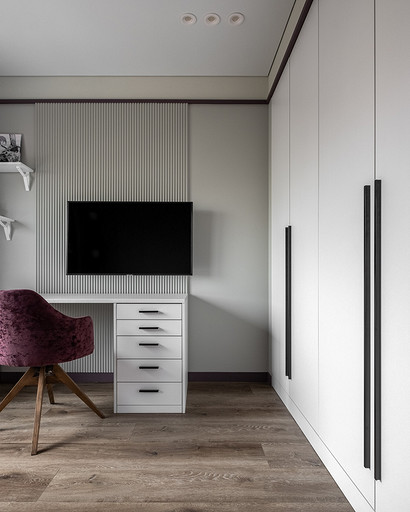 В процессе создания концепции пространства, мы учитывали пожелания и потребности семьи из четырех человек. Мы добавили много хранения и комфортных мебели, чтобы оптимизировать использование пространства и создать функциональные зоны в квартире. Также интерьер сделали яркий и не скучным, используя разнообразные цветовые сочетания и элементы декора. Мы учли особенности каждого члена семьи, чтобы создать уютное и функциональное пространство для всех. В данном случае заказчики — семейная пара с двумя дочками, одна из которых является подростком, а другая — юной леди. Пожелания и приоритеты заказчиков включали: 1. Много хранения: заказчики хотели иметь достаточно места для хранения различных вещей и предметов семьи, чтобы оптимизировать использование пространства и избежать беспорядка. 2. Комфортная мебель: заказчикам было важно иметь удобную и функциональную мебель, которая будет способствовать релаксации и комфорту в доме. 3. Яркость и разнообразие: заказчики желали создать интерьер, который был бы ярким и не скучным, с использованием разнообразных цветовых сочетаний и элементов декора. Но в тоже время, чтобы все было в едином стиле. 4. Разделение зон: семья хотела иметь функциональные зоны в своей квартире, чтобы каждый член семьи мог иметь свое пространство и наслаждаться своими интересами. 5. Учет особенностей каждого члена семьи: заказчики хотели, чтобы интерьер учитывал и отвечал потребностям и предпочтениям каждого члена семьи. Особенностями конкретных членов семьи, упомянутых в вопросе, были характер подростка и индивидуальные предпочтения юной леди. Учитывая все эти пожелания и приоритеты, мы разработали концепцию пространства, которая была функциональной, комфортной, стильной и подходила для всех членов семьи. В данном примере главная идея зонирования заключается в создании отдельных пространств, определенных для конкретных целей. Это позволяет разделить функции и деятельности, обеспечивая комфортное использование пространства. В главной зоне, выделенной для столовой, применена декоративная перегородка для разделения от гостиной. Таким образом, создано дополнительное приватное пространство для обедов и ужинов. В гостиной установлен большой удобный диван и журнальный столик, что обеспечивает комфортное пространство для отдыха и развлечений. Основной цвет в кухне-гостиной выбран серым, что может создавать спокойную и сдержанную атмосферу. В спальне расположена большая кровать с комфортным матрасом и прикроватные столики с осветительными приборами. Это обеспечивает комфортный отдых и сон. В детской комнате создана игровая зона с ковриком для игр и полками для хранения игрушек, а также установлены удобная кровать и письменный стол для учебы. Нежный рисунок на стенах и акцентные детали добавляют атмосферу нежности и уюта. В комнате старшей дочери использовано сочетание лавандового цвета и темной фуксии, которое добавляет нежности, романтичности и глубины в интерьер. Для отделки стен была выбрана комбинация покраски и 3d панелей от Orac Decor. Основное покрытие пола – SPC ламинат My Step Aqua Wiesent MSA21. А в качестве керамической плитки был выбран керамогранит от компании Italon. Основной цвет в интерьере основных помещений использовали серый. Серый цвет является одним из наиболее универсальных в интерьере .Он созда