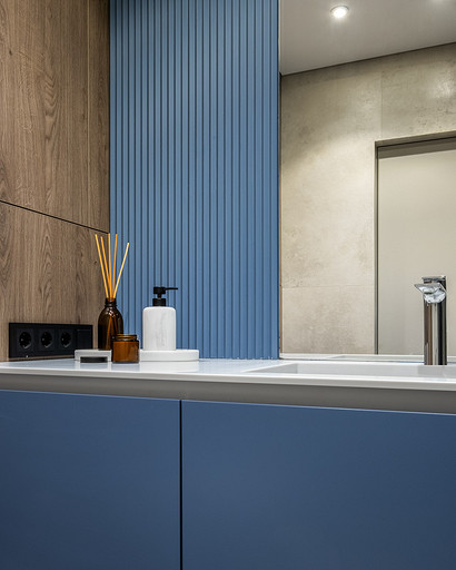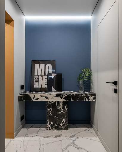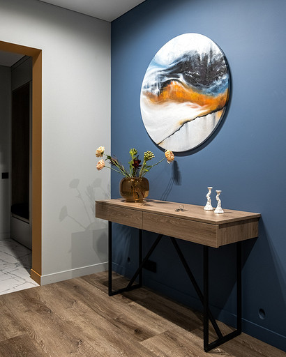 - Стены: краска матовая, 3D-панели Orac Decor