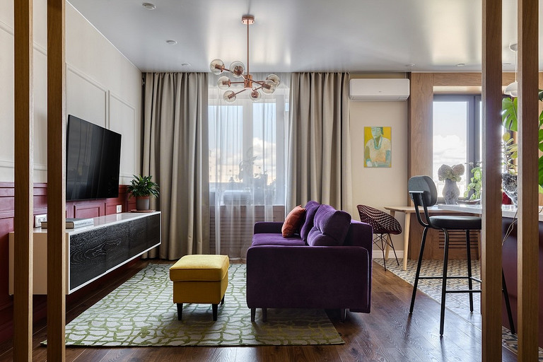 Хозяева доверились дизайнерам, которые предложили использовать яркие цвета в отделке. И теперь наслаждаются новой обстановкой. Читать далее...