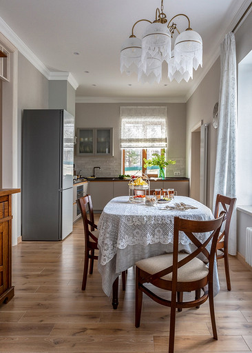 Дизайнер Светлана Оленбург создала вдохновляющий интерьер дома в Казани, где даже через фото считываются теплота, уют и гармония. Уделено внимание истории семьи и места. На кухне — старинный буфет, передавшийся по наследству главе семьи, а на стол постелена скатерть, которая досталась хозяйке от ее бабушки. Фасад дома стилизован под памятники архитектуры Казани эпохи модерна. Узнайте подробности из статьи! Читать далее...