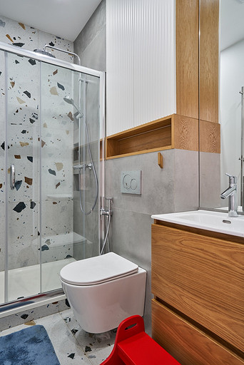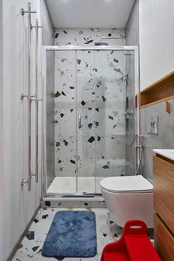 - Стены и пол: керамогранит Arcana