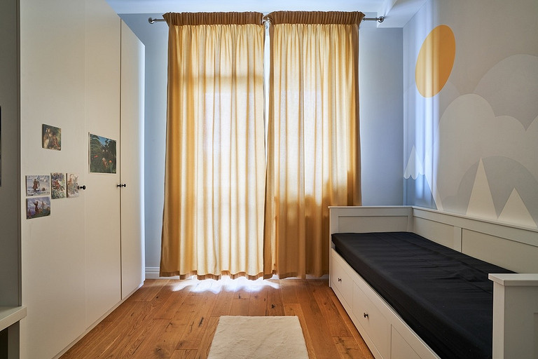 - Мебель: диван, приставной столик и кровать SK Design, прикроватные тумбы и комод The Idea, стул Loft Designe