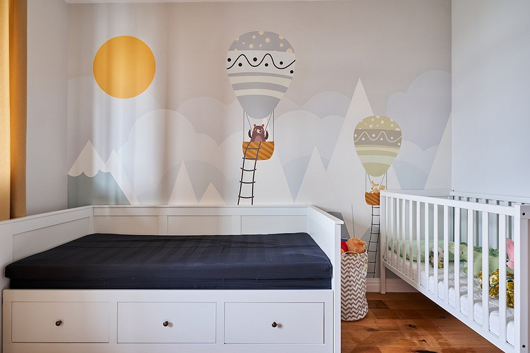 - Мебель: кровать-кушетка, шкаф, стол, стул и стеллаж ИКЕА, кровать-домик Marketpik, пуф Aliexpress