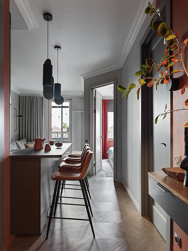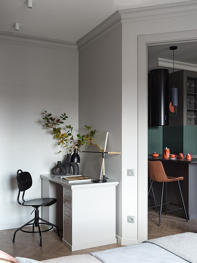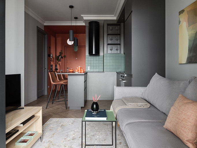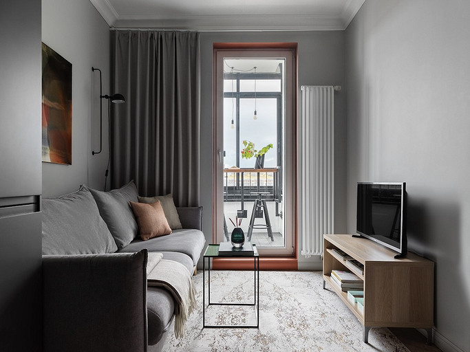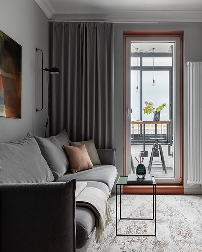 Дизайнеру удалось вписать зону гостиной в небольшую квартиру, сохранить спальню, а также найти место для гардеробной. Получилась почти двушка на маленькой площади. Читать далее...