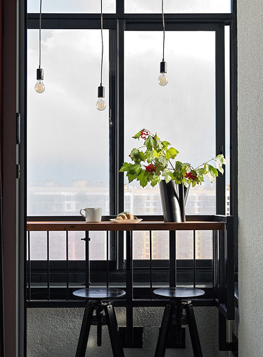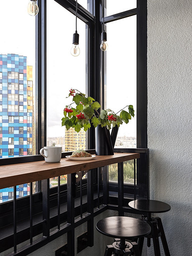 - Мебель: диван divan.ru, подвесные тумбы (в прихожей и возле кровати) и столик у дивана La Redoute, полубарные стулья DeepHouse, кухня и табуреты на лоджии ИКЕА