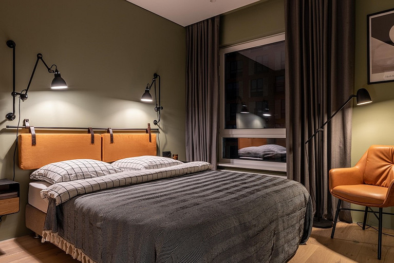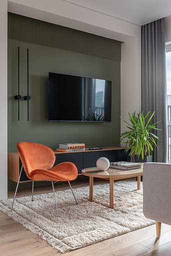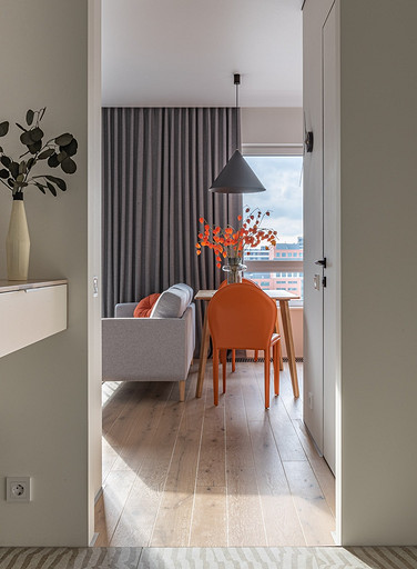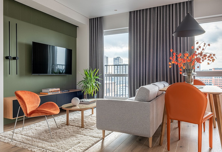 Квартира с лаконичным интерьером и яркими деталями для пары