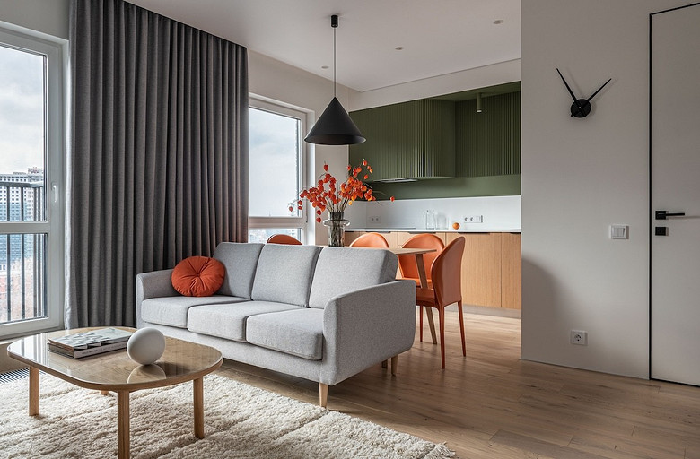 Дизайнер улучшила планировку с помощью маленьких изменений и создала комфортный не скучный интерьер для молодых супругов. Главные герои — зеленый и оранжевый цвета. При этом благодаря балансу ярких оттенков и базовых цветов маленькая квартира выглядит визуально больше! Читать далее...