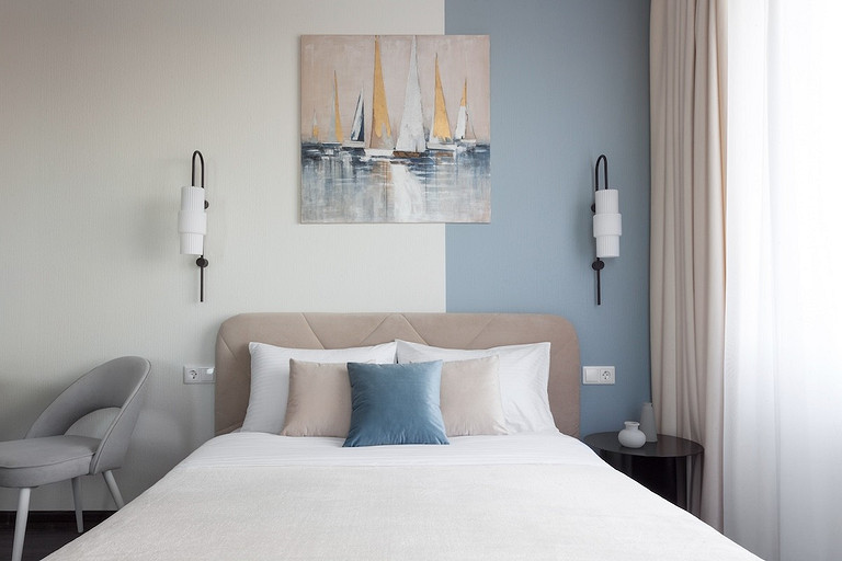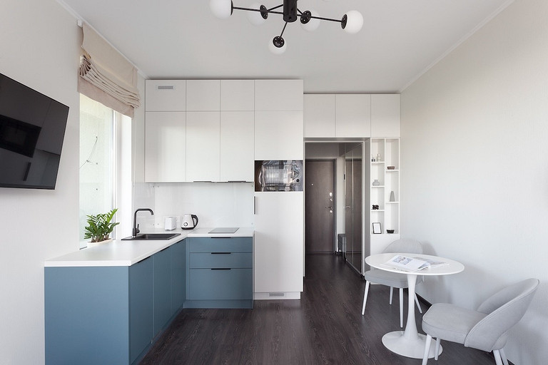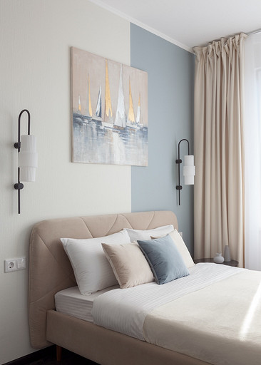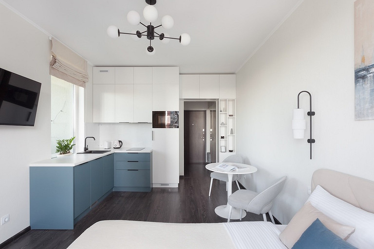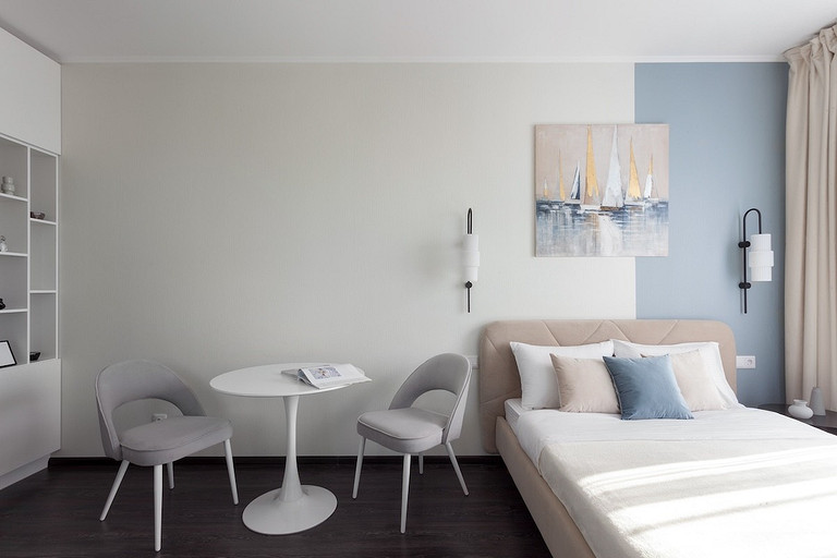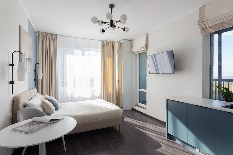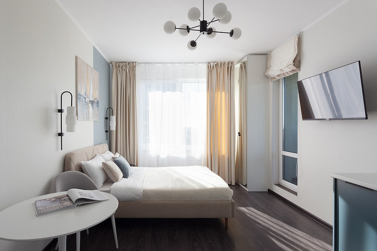 - Мебель: кровать, журнальный столик и обеденный стол divan.ru, кресло Acapulco, кухня и шкафы изготовлены на заказ в мебельной компании