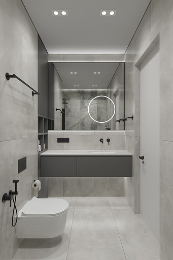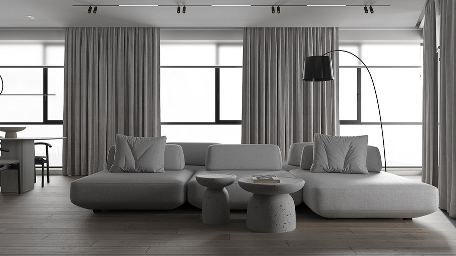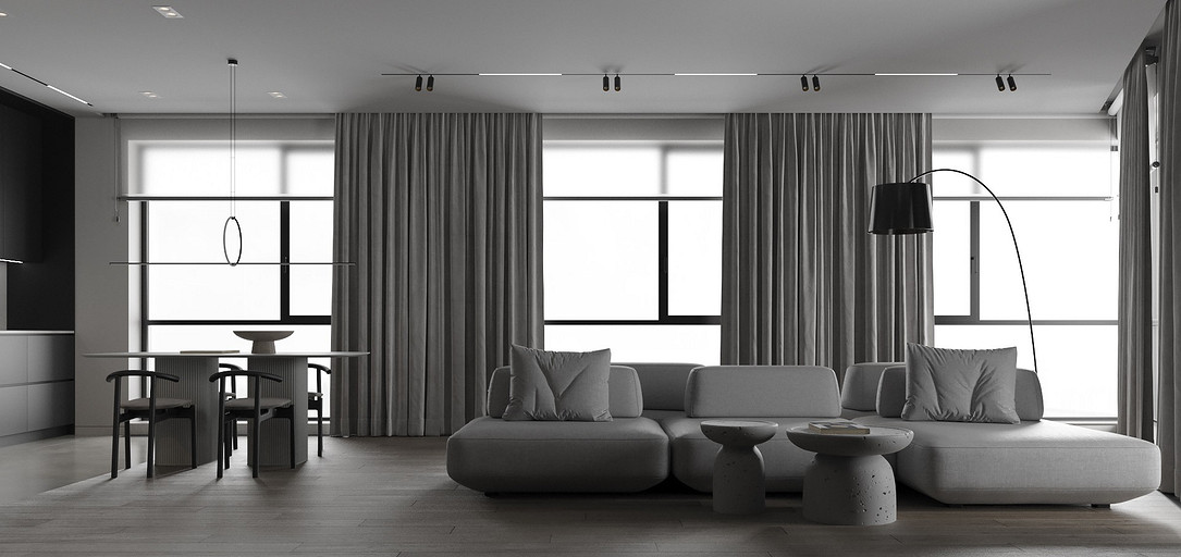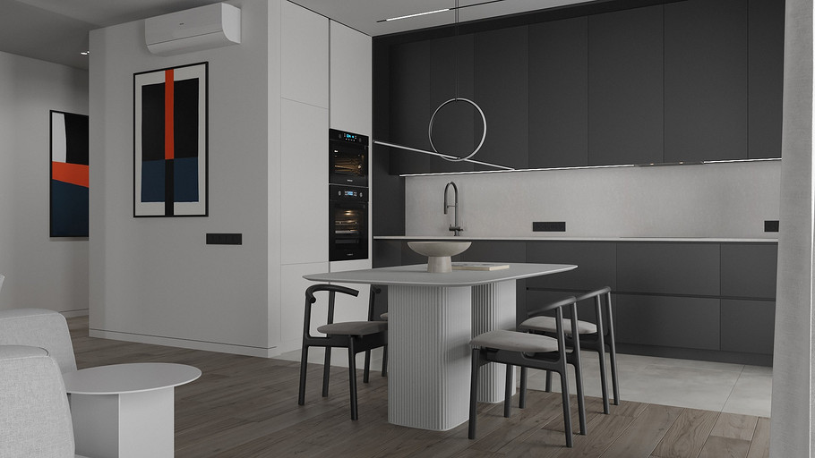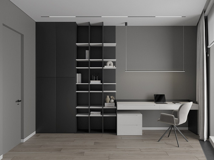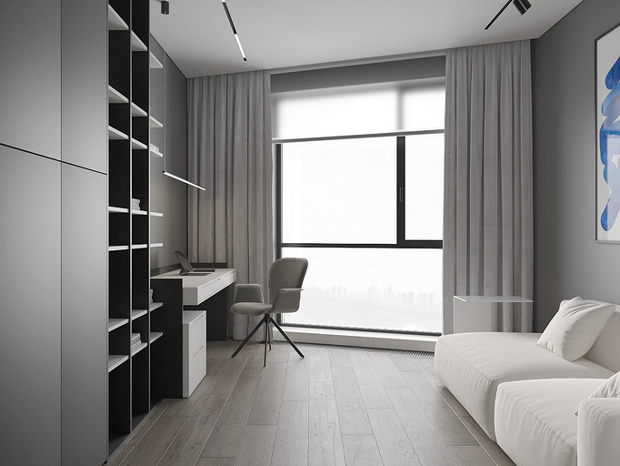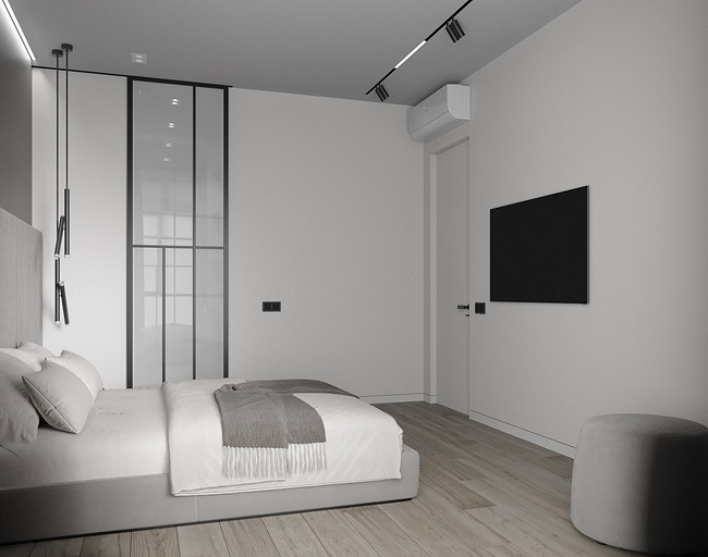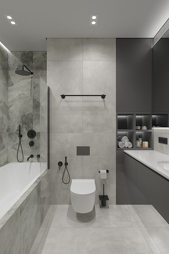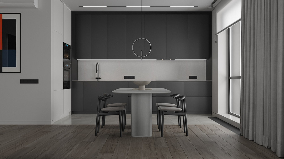 Современная квартира Wellton Towers. Квартира в современном стиле с элементами минимализма выполнена в серых тонах.