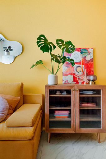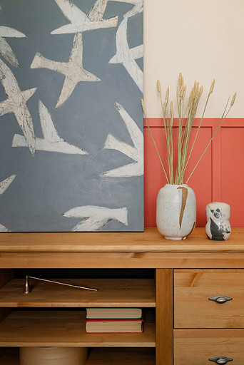 Создавая интерьер с элементами ретро, дизайнер оставила часть отделки от застройщика, чем помогла хозяевам сэкономить. Что-то из мебели она нашла на интернет-площадках и тем самым не только создала винтажную атмосферу, но и подарила предметам из 1960-х вторую жизнь. Читать далее...